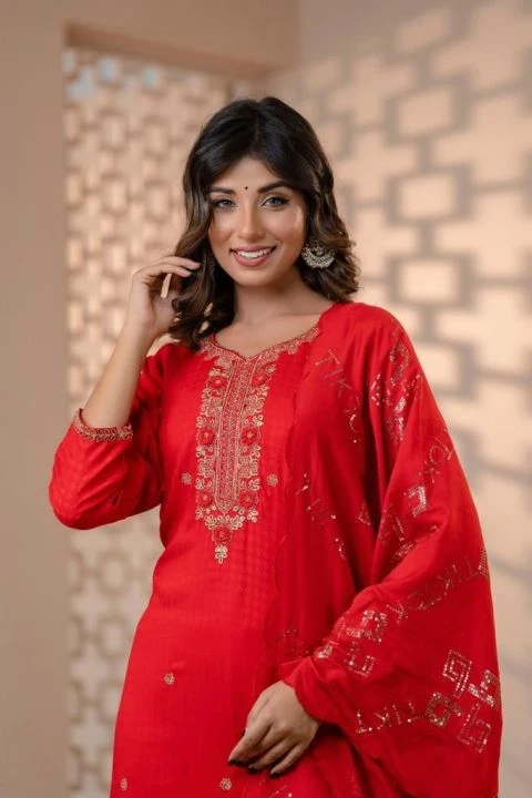 The set is machine-washable on a gentle cycle, but hand-washing and air-drying is recommended to preserve the embroidery and fabric quality. This kurtha suruwal set blends tradition with modern tailoring, making it a perfect choice for cultural celebrations, weddings, or your everyday wardrobe.